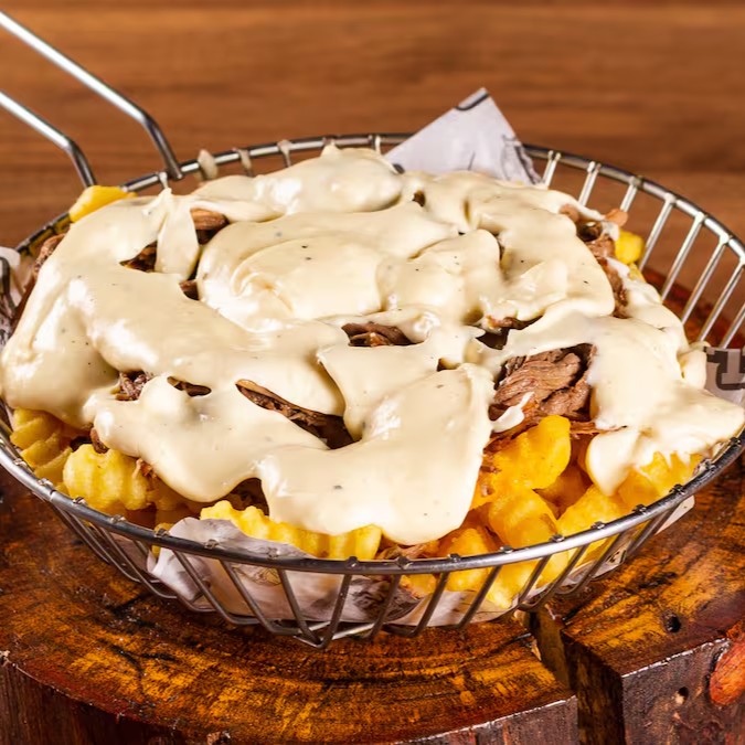 Porção de 400g de fritas crocantes, cobertas com delicioso creme de queijos e costela desfiada suculenta, acompanhadas da nossa maionese da casa — a combinação perfeita de sabor, cremosidade e crocância que todo mundo ama!