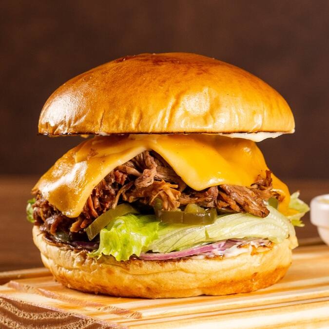 Pão brioche macio, maionese da casa, fatias de pimenta jalapeño que dão aquele toque picante, 200g da nossa costela famosinha desfiada feita na casa, queijo prato derretidinho e cebola roxa fresca!