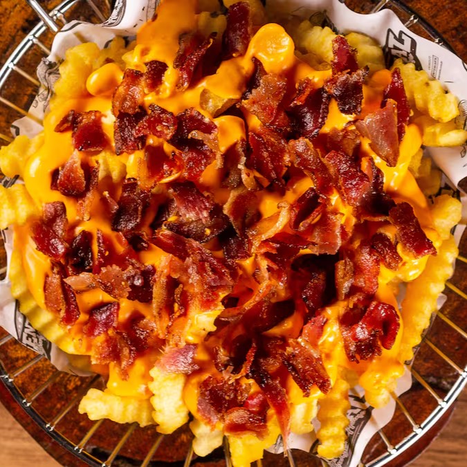 Porção de 400g de fritas crocantes, cobertas com delicioso creme de cheddar e bacon crocante, acompanhadas da nossa maionese da casa — o combo perfeito de sabor e textura em cada mordida!