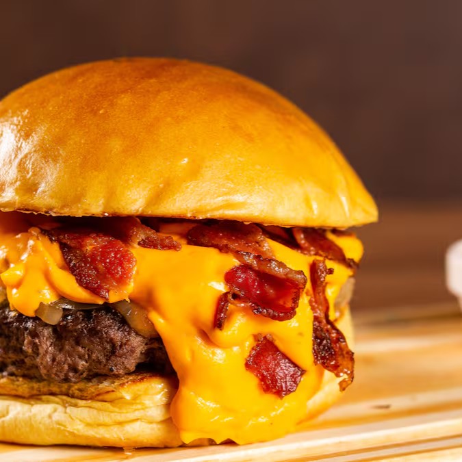 Pão brioche macio, maionese da casa, hambúrguer suculento de 200g, bacon picado crocante, cebola caramelizada docinha e creme de cheddar cremoso que derrete na boca!