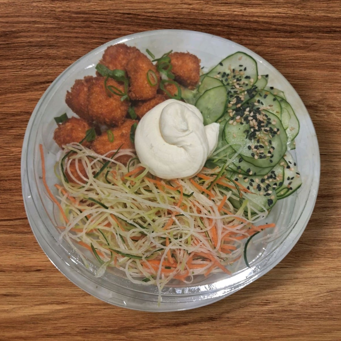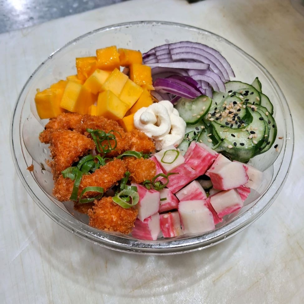 Poke Arroz Salmão Frito Pepino Manga Cebola Kani E Cream Cheese