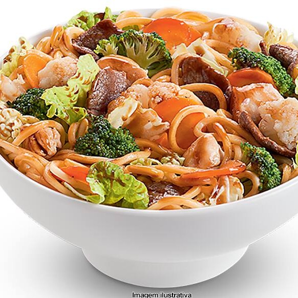 Macarrão com frango brócolis cenoura couve flor acelga e cebola
