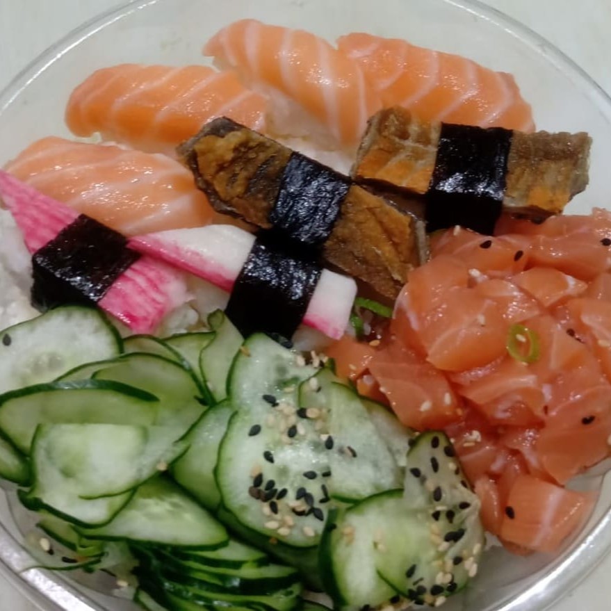 Poke 2 Sushi Sushi Variados Salmão Em Cubos E Salada Pepino