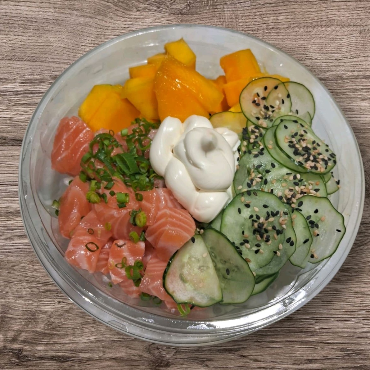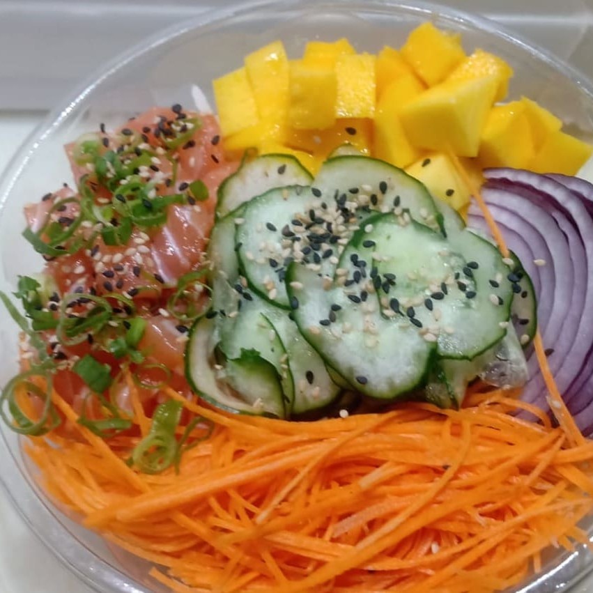 Poke 1 Arroz Salmão Pepino Manga Cebola Roxa E Cenoura