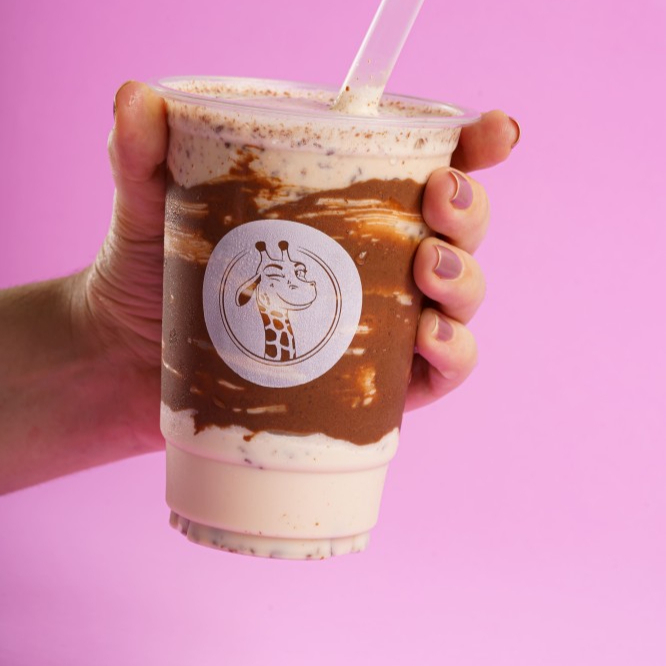 Nosso Milkshake de Ovomaltine é super cremoso, feito com gelato fior di latte e uma generosa dose de Ovomaltine.