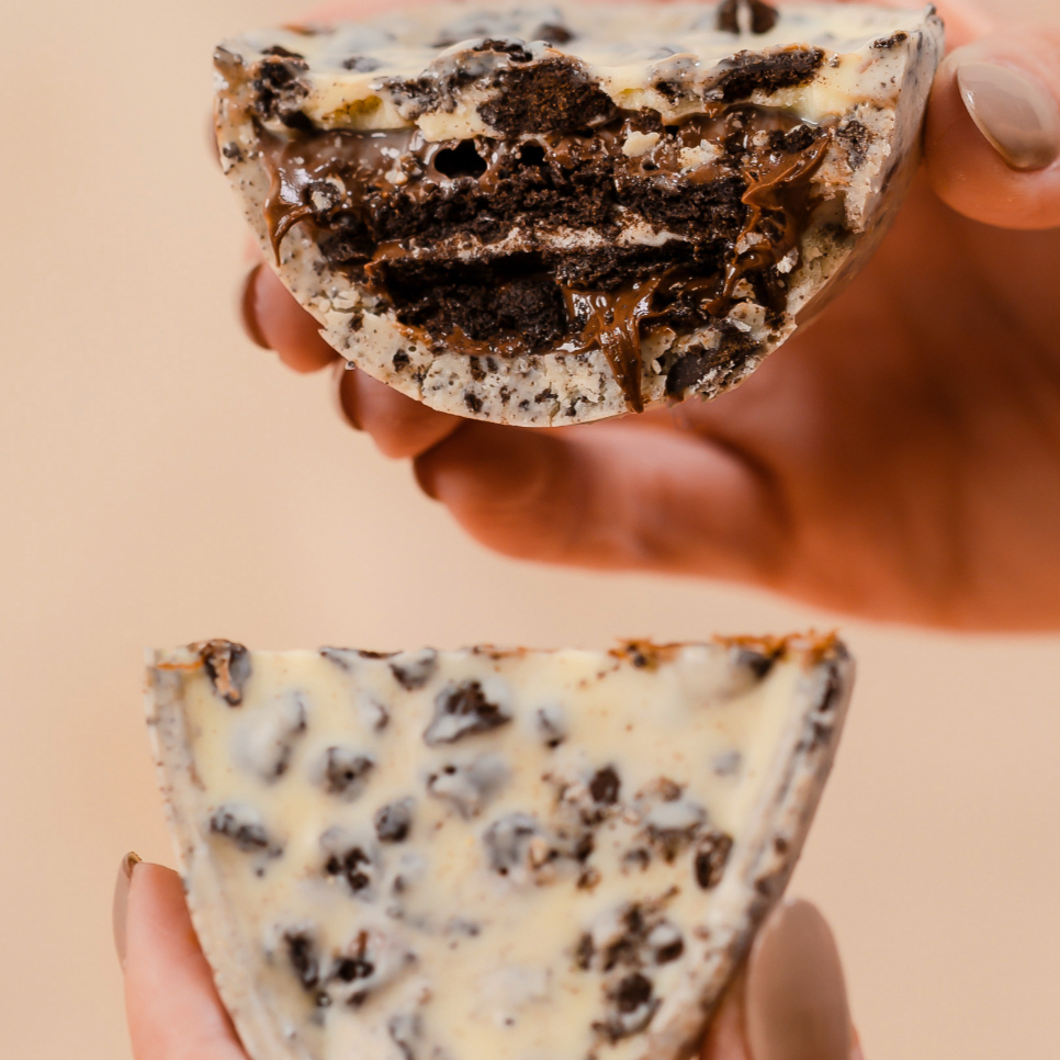 Casquinha de chocolate branco, recheado com Oreo e Nutella pura. Peso médio 80g.