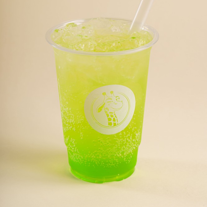 Bebida à base de água com gás, gelo e xarope de Maçã Verde