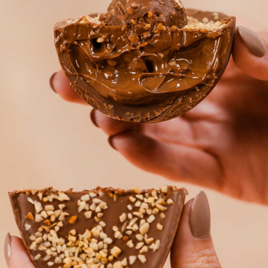 Massa de chocolate com recheio de Nutella crunch (com pedacinhos de avelã). Gostinho de ferrero rocher