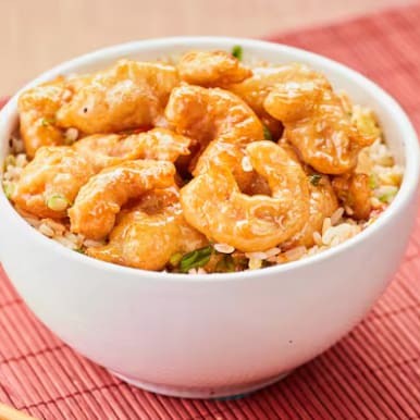 Nossa receita especial de Camarão Chinês Frito Ao Molho a Sua Escolha é acompanhada do nosso arroz yakimeshi, com flocos de ovos que dão aquele toque final.