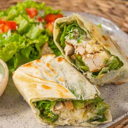 Wrap recheado com frango, alface americana, croutons, finalizado com queijo parmesão e molho caesar Giro.
