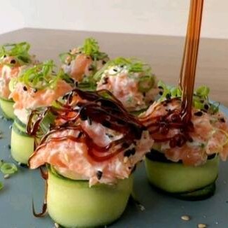10 unidades de joy de pepino com salmão e cream chesse e cebolinha