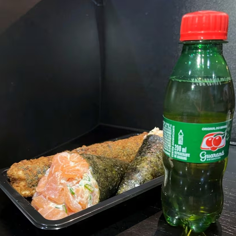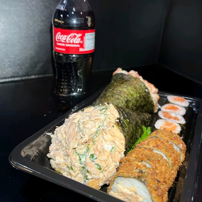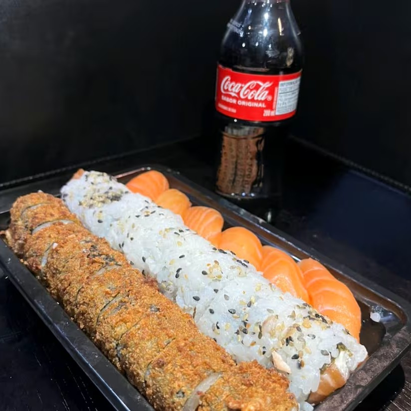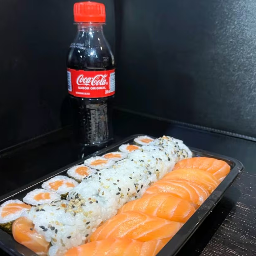 10 hot holl, 10 uramaki filadélfia, 6 niguiri de salmão + refri pet 200 ml