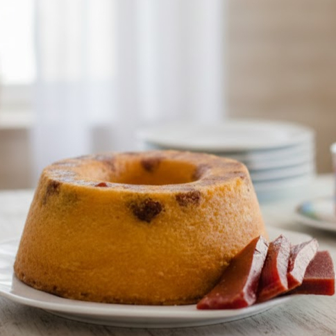 Um delicioso bolo de fubá com pedaços de goiabada na massa <3 rendimento:6 á 8 fatias.