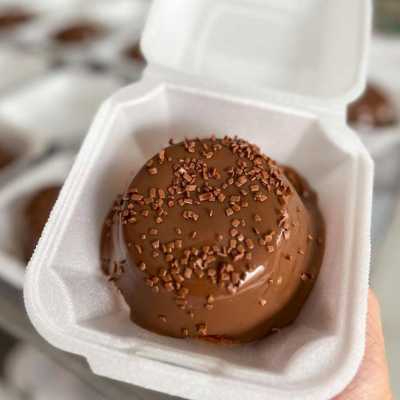 Um delicioso mini vulcão de chocolate com cobertura de brigadeiro e granulado.