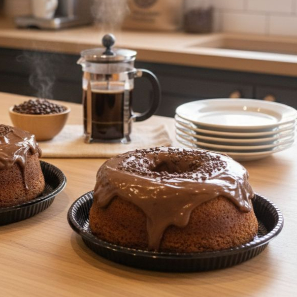 Um delicioso bolo de chocolate com cobertura de chocolate. Rendimento: 6 á 8 fatias.