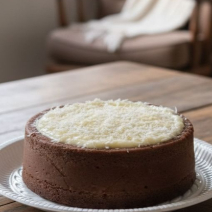 Um delicioso bolo de chocolate com cobertura de ninho e chocolate. Rendimento 6 á 8 fatias.