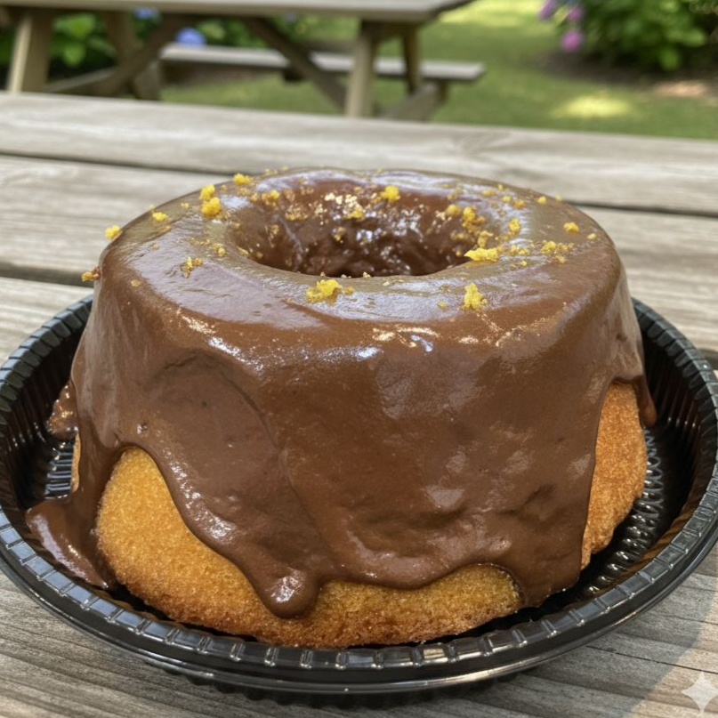 Um delicioso bolo de chocolate umido e fofinho, com brigadeiro e granulado por fora. Rendimento: 6 á 8 fatias.