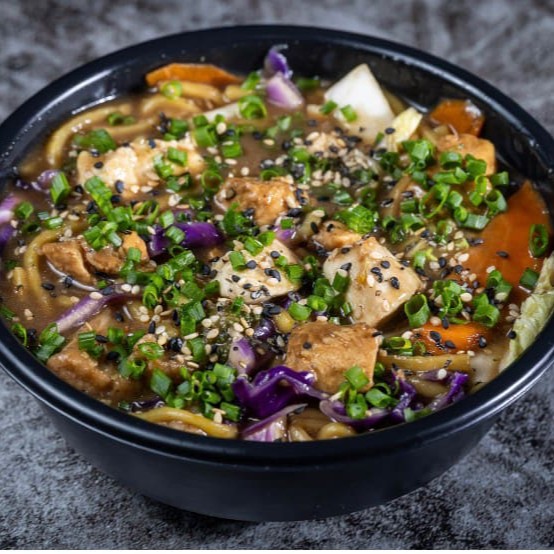 Legumes frescos ( Cenoura, Brócolis, Couve Flor) Carne e frango salteado, com molho do chef e finalizado com cebolinha e gergelim