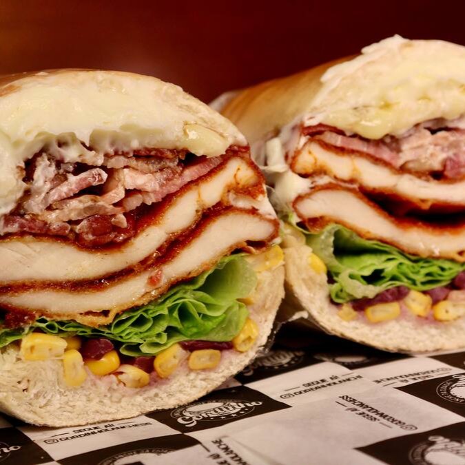 Pão de Hambúrguer ou Francés, Maionese, Tomate Seco, Alface ou Rucula, Frango, Catupiry, Bacon em fatias, Ovo, e Queijo Mussarela.