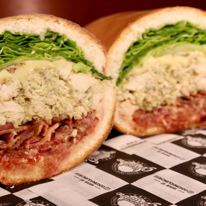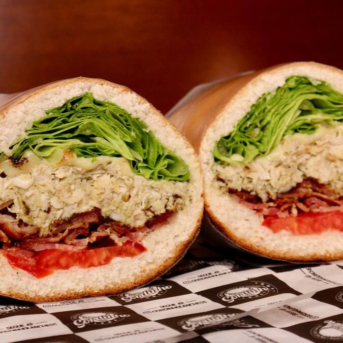Pão de hambúrguer, frango, Catupiry, queijo mussarela, tomate, alface e maionese.