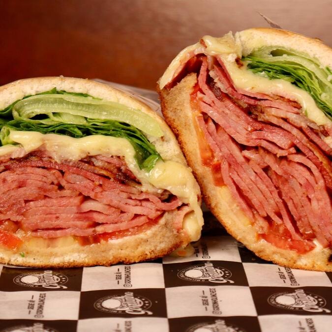 Pão de Hambúrguer ou Francês, Tomate Seco, Alface ou Rucula, Cebola Roxa, Azeitonas Pretas, Filé Mignon em tiras (180g), Bacon em fatias, Catupiry, Presunto e Mussarela.