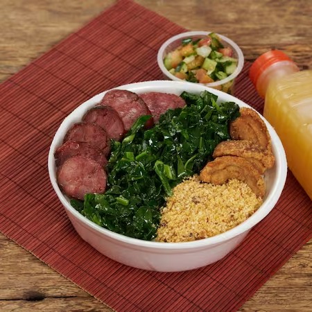 Arroz + Feijoada + Linguiça Assada + Couve + Torrresmo, Vinagrete e Farofa