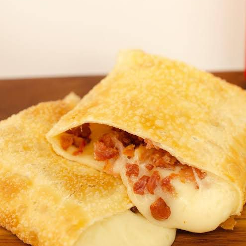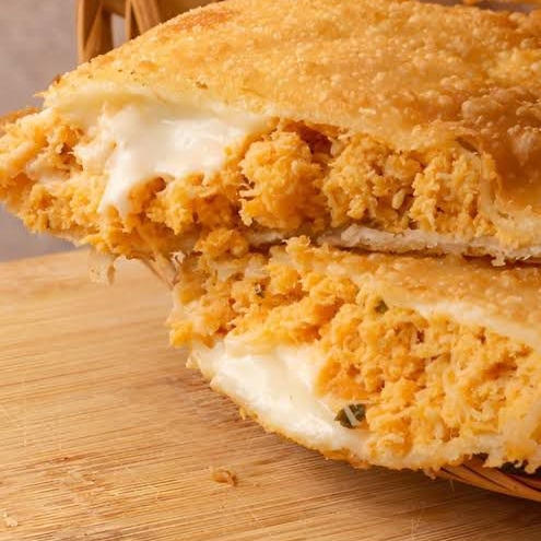 Delícioso salgado grande massa leve e crocante, com recheio de frango bacon e cheddar, cada mordida uma experiência única!