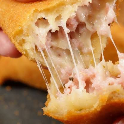 Salgado de massa leve, sequinho e crocante na medida certa, recheado com costela e catupiry tempero caseiro um espetáculo de sabor