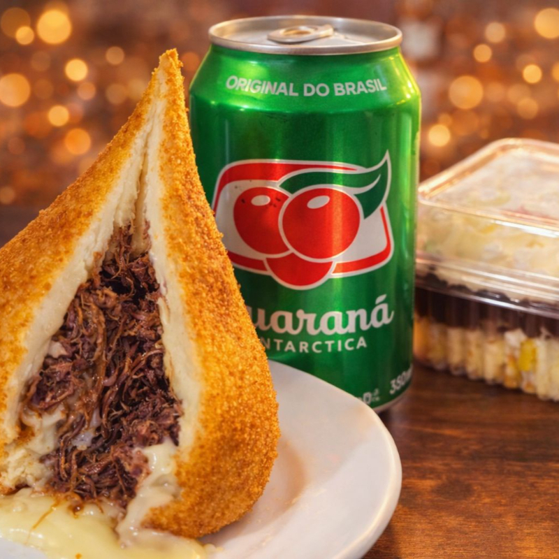 combo costela suprema, comporto por um salgado Grande de Costela com catupiry, guaraná Antarctica e um bolo de pote de Ninho. Experimente a explosão de sabor que o salgado de Costela oferece