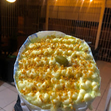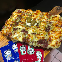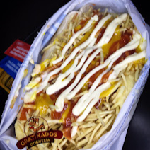 A base é um pão fresquinho e macio, recheado com duas salsicha sadia, coberto com milho, vinagrete, ketchup, mostarda e a famosa maionese hellmann's, por dentro batata palha crocante, Para finalizar, calabresa grelhada, cheddar com um purê de batata aveludado e alho frito dourado. Uma experiência gastronômica única!