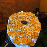 A base é um pão fresquinho e macio, recheado com duas salsicha sadia, coberto com milho, vinagrete, ketchup, mostarda e a famosa maionese hellmann's, por dentro batata palha crocante, Para finalizar, molho apimentado, Doritos crocante, cream cheese com um purê de batata aveludado e alho frito dourado. Uma experiência gastronômica única!