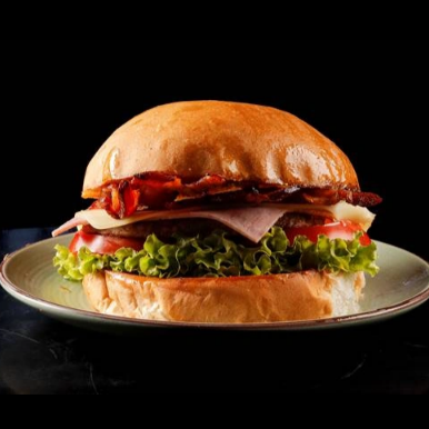 Pão de Brioche, maionese defumada, alface americano picado, tomate fresquinho, hamburguer artesanal de pura suculência 100g, bacon em fatias e para finalizar queijo mussarela