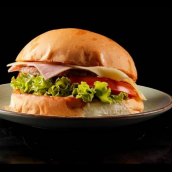 Pão de Brioche, maionese defumada, alface americano picado, tomate fresquinho, hambúrguer artesanal 100g de pura suculência e para finalizar queijo mussarela
