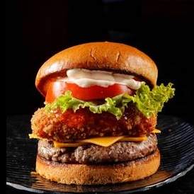 Pão de brioche, alface, tomate, hambuguer artesanal 180g, mussarela empanada frita, geleia de pimenta e molho de geleia de pimenta.