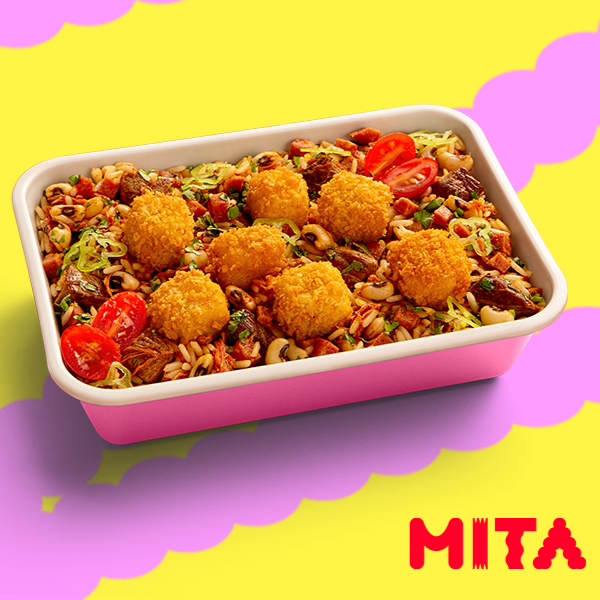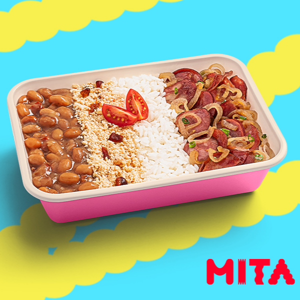 Não é um prato, é um patrimônio nacional. Nosso saboroso picadinho de carne vem na inseparável companhia do arroz, feijão preto e uma deliciosa farofa de milho. Salsinha, cebolinha e tomate-cereja dão aquela beleza tropical no seu Mita.
