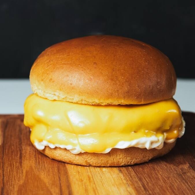 Pão brioche,queijo cheddar,Maionese caseira,120g de hambúrguer caseiro de fraldinha.