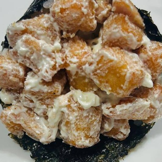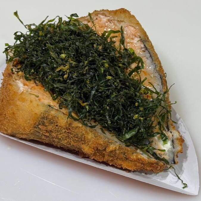 Temaki de cubinhos de salmão empanado com cream chesse e cebolinha