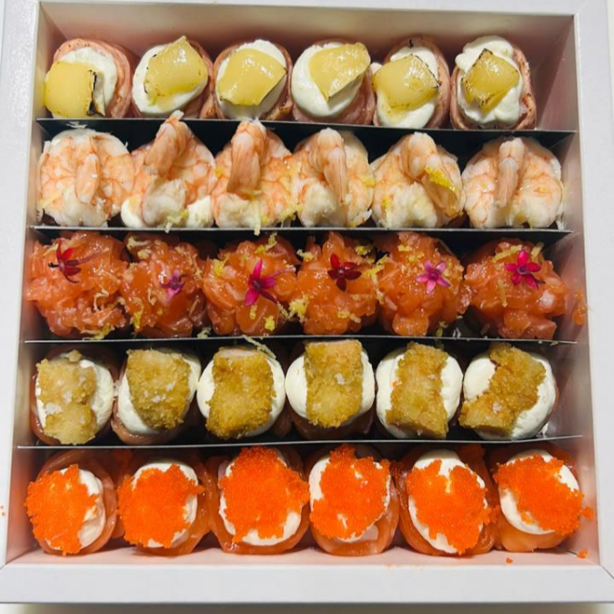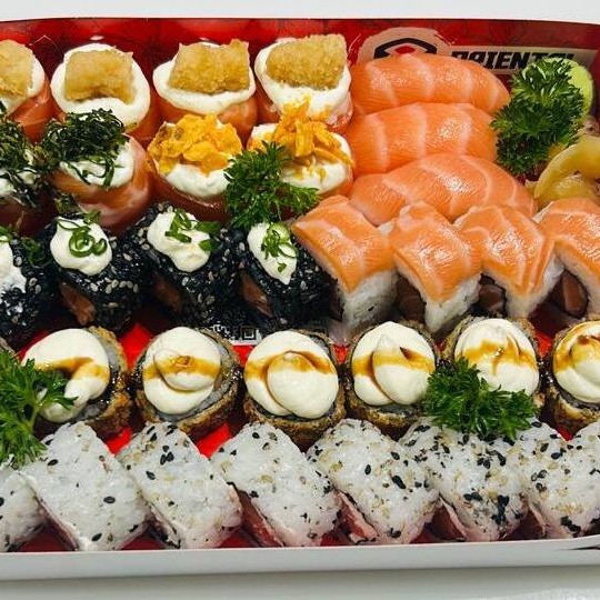 Um combinado completo para os amantes de sushi! São 8 uramakis, 8 niguiris, 8 hossomakis e 8 joes, todos preparados com peixes frescos e ingredientes selecionados, garantindo sabor e qualidade em cada mordida. Uma explosão de variedade e frescor!