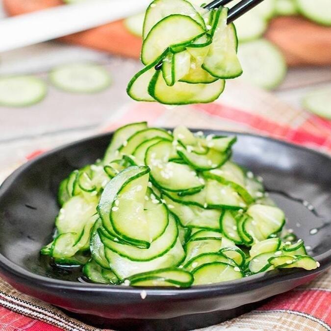 Tradicional salada japonesa de pepino com molho agridoce finalizado com gergelim (aprox.250g)