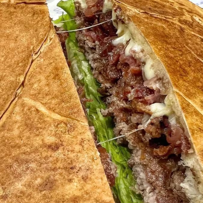 Pão de gergelim, 2 hambúrguer artesanal de 130g, queijo, bacon, cebola crispy, alface, tomate, ketchup e maionese.