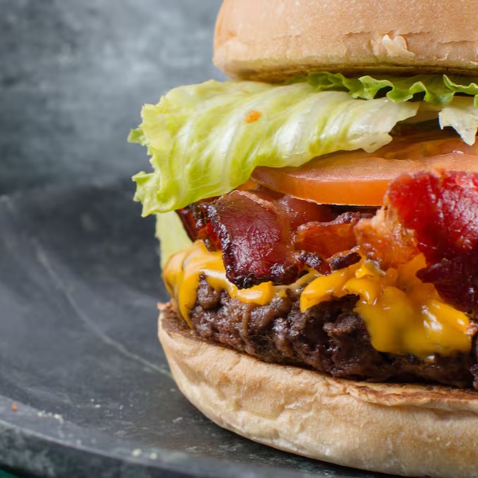 Hambúrguer de 130g, queijo, bacon,
