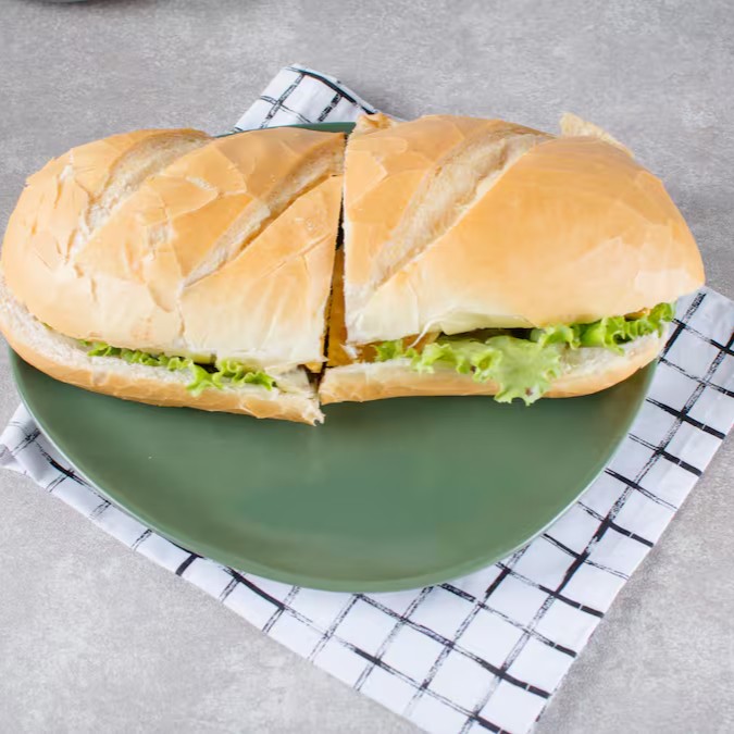 alface e maionese no pão francês.