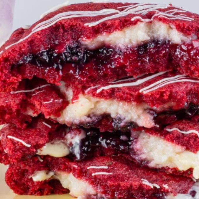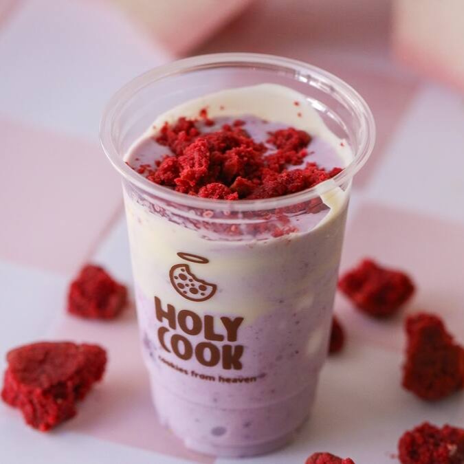 Para quem gosta de frutas vermelhas, ou algo que lembre o sabor de morango, o milkshake de Red Velvet tem muuuita frutas, chocolate branco e pedaços de cookie red velvet. Você vai amar <3