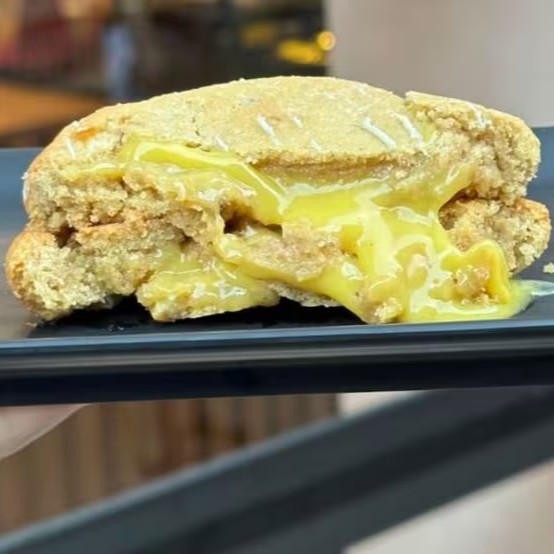 Ganache de limão siciliano com pedaços de chocolate branco de alta qualidade, que derretem na boca e adicionam uma doçura cremosa ao cookie.