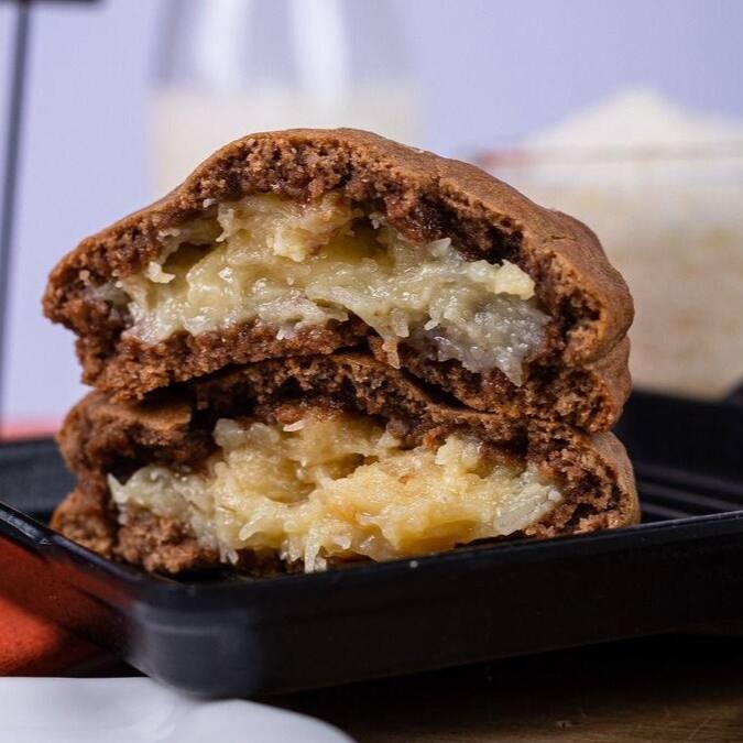 Cookie na massa de cacau com recheio de cocada cremosa artesanal