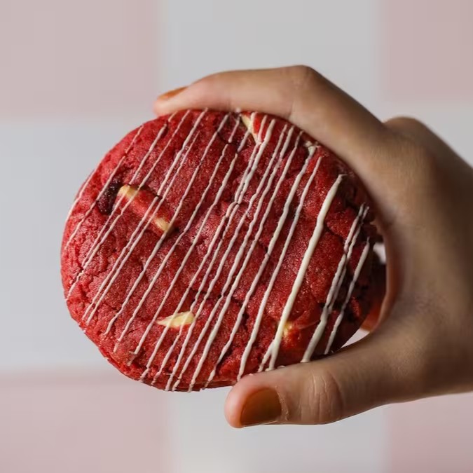 Frutas vermelhas e pedaços de cookie red velvet.
