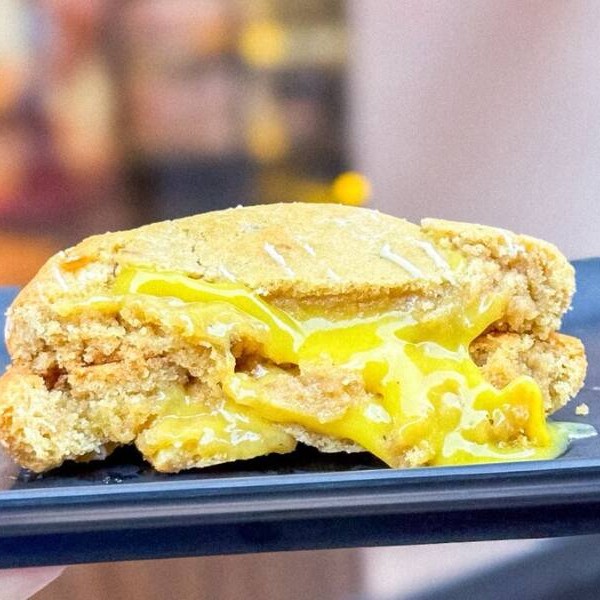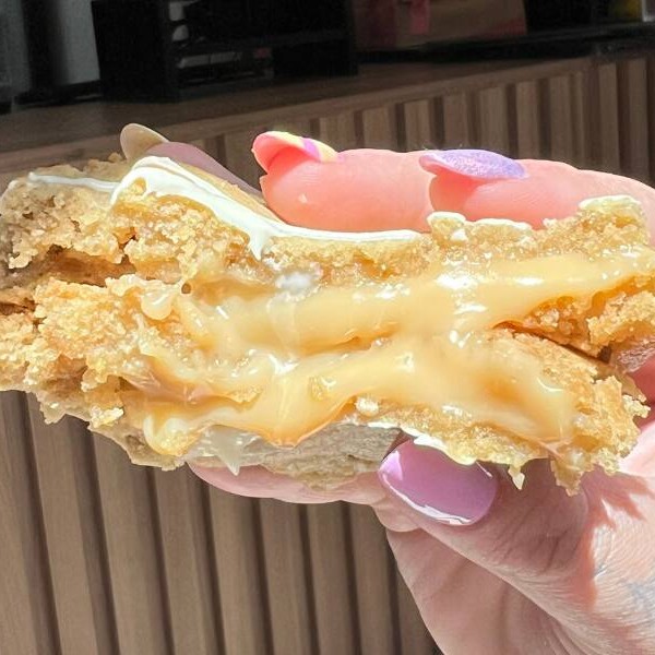 Cookie com pedaços de chocolate branco e recheio cremoso de limão siciliano