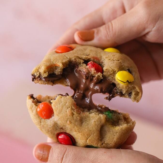 Cookie de M&M's e recheio de chocolate ao leite