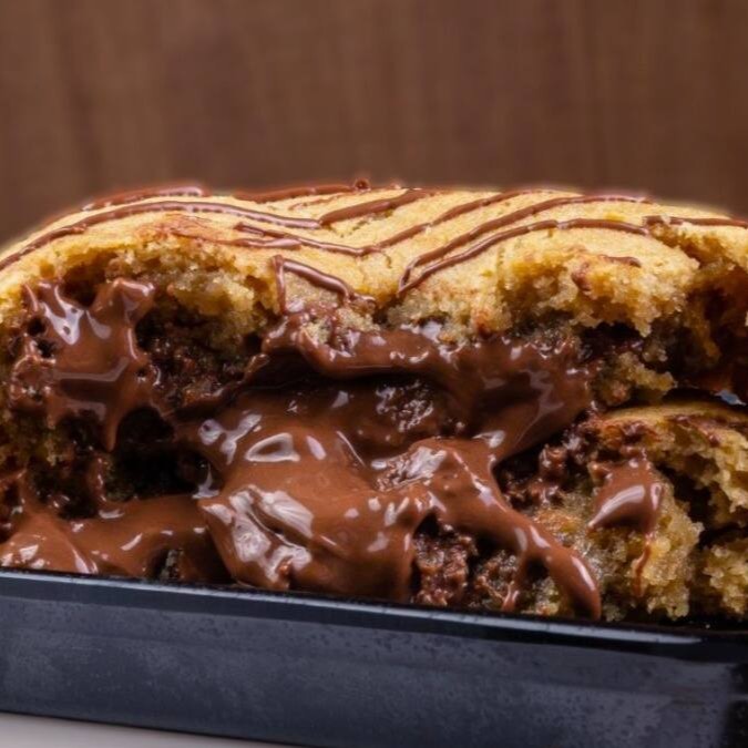 Cookie recheado com brigadeiro cremoso de Leite Ninho e Nutella