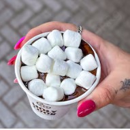 Leite vaporizado com café expresso e pedaços de chocolate opcional- chocolate meio amargo ou canela em pó.